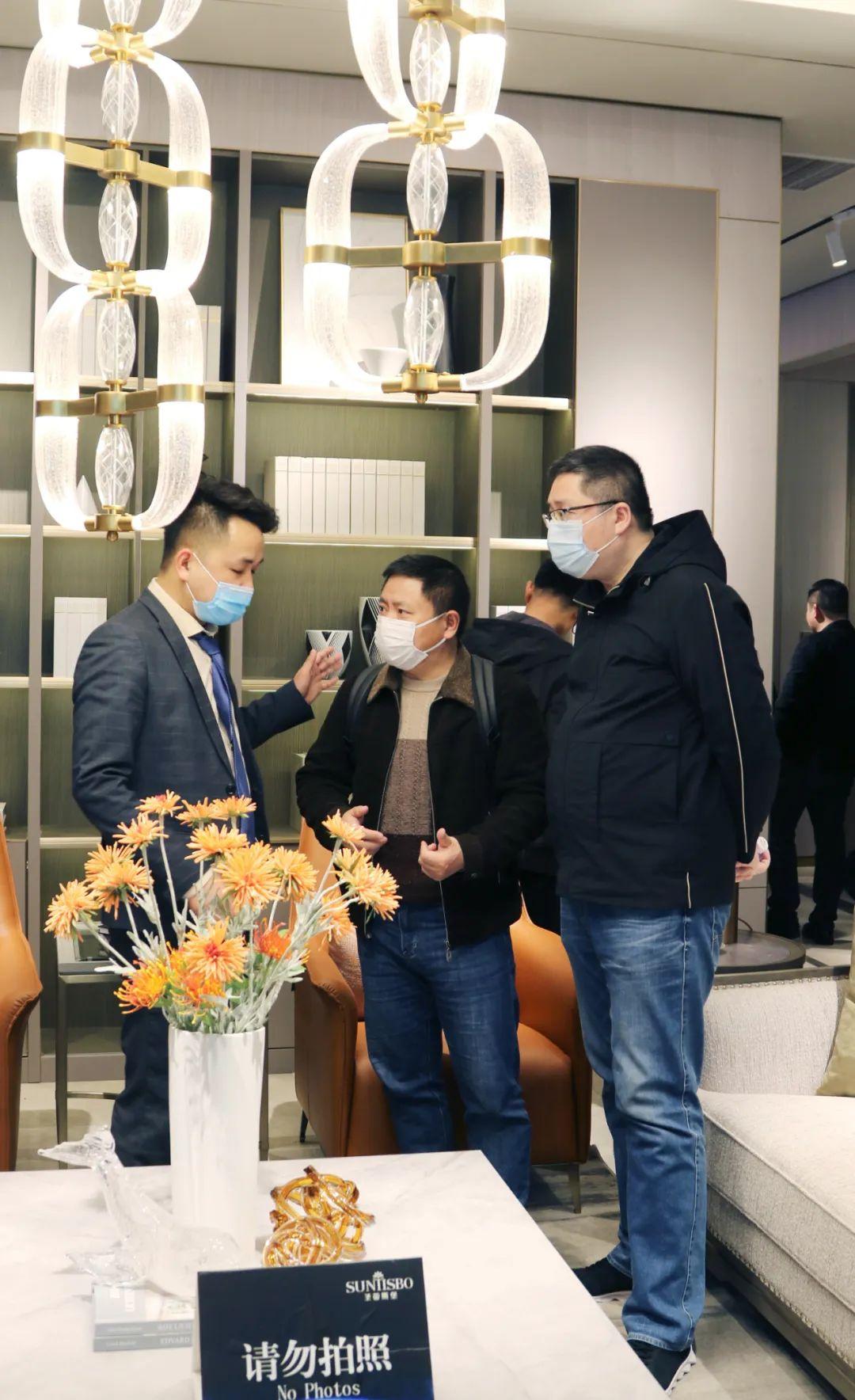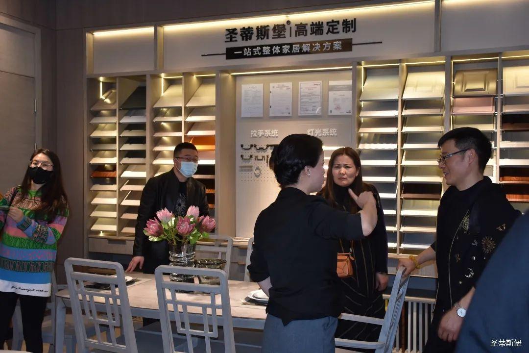 展廳內,專業的導師為嘉賓們詳細介紹了產品工藝特點、整體造型特色、裝飾元素以及色彩搭配等;還有全屋定制、固裝、營銷等部門高管,與經銷商熱情的交流溝通,并為大家講述了圣蒂斯堡的原創設計理念?!奥逅埂敝鞔虻牟町惢p奢,更是贏得了在場經銷商家人的高度贊譽;圣蒂斯堡用實際行動證明了在家居界不可比擬的產品優勢和實力。