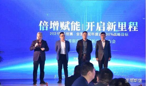 2020年12月25日,倍增賦能|開啟新里程——“圣蒂斯堡·洛斯”新品發布會在?廣東省東莞市厚街鎮會展中心南路2號的集團營銷中心盛大舉行,圣蒂斯堡董事長王健文先生攜公司高層領導,與來自五湖四海的經銷商家人們歡聚一堂,共同見證【圣蒂斯堡·洛斯】新品榮耀面世,正式拉開了圣蒂斯堡2021年的發展序幕。