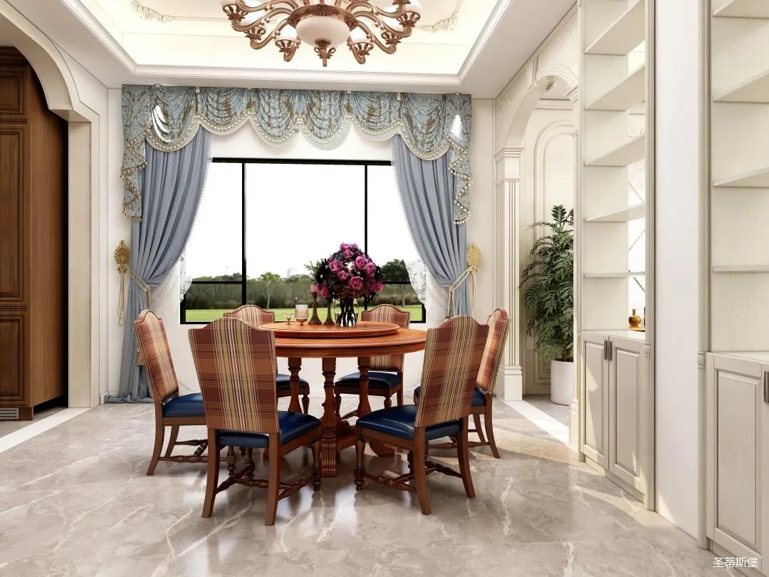 新古典風格中填入少量的傳統(tǒng)裝飾,與美式和諧相融。精細的實木手工雕刻,傳統(tǒng)形狀的基礎韻味與美式的細節(jié)取長補短。不但富有審美的愉悅,更重要的是令居住舒適而貼近自然。背景墻更是復古與潮流的完美結(jié)合,具有經(jīng)典卻簡潔的圖案、復古卻時尚的色彩,既包含了古典風格的文化底蘊,也體現(xiàn)了現(xiàn)代流行的元素。