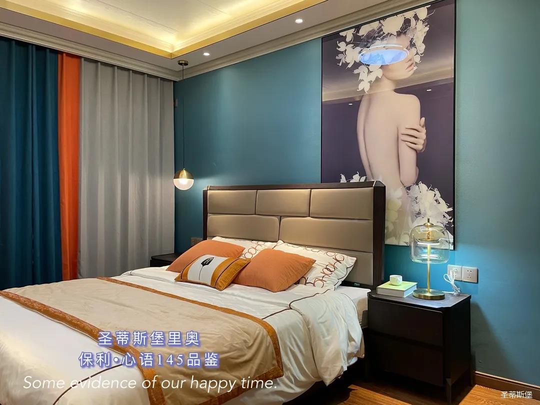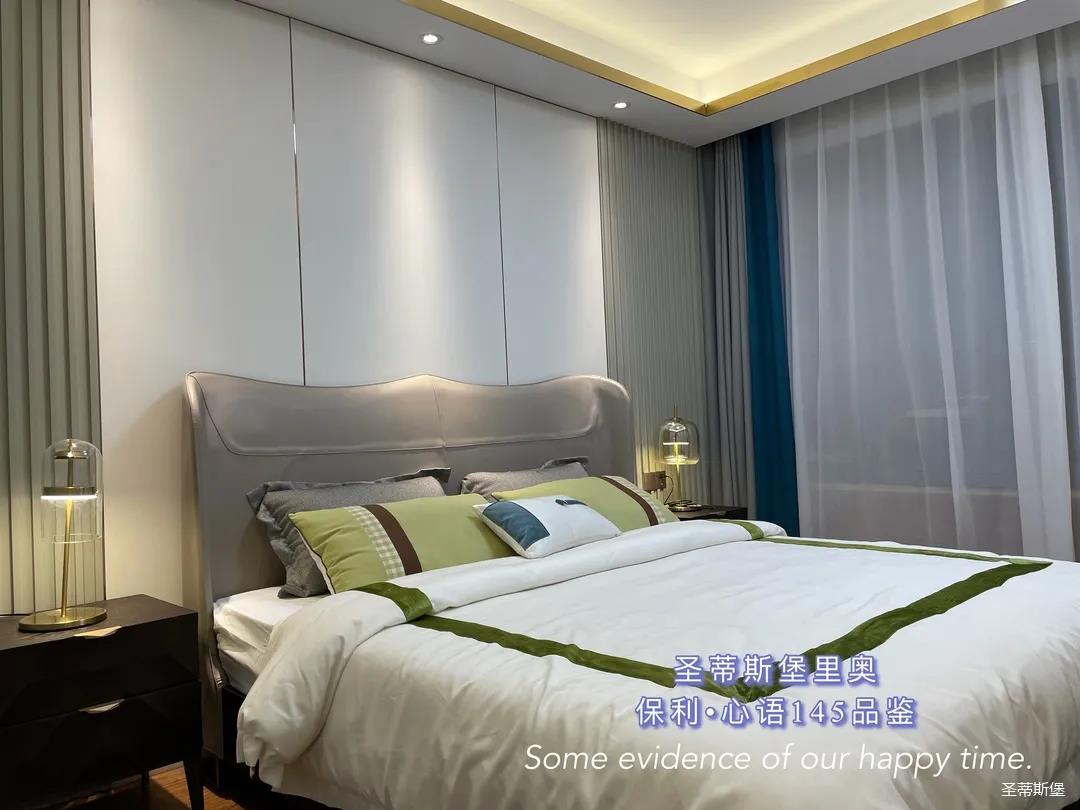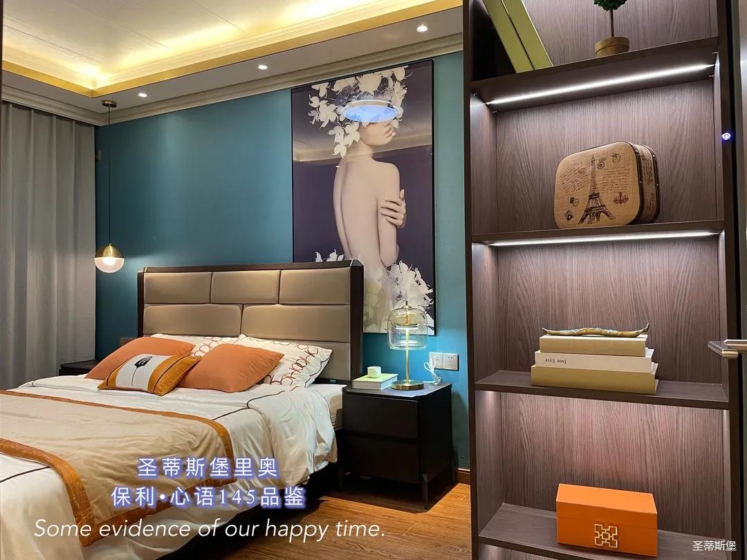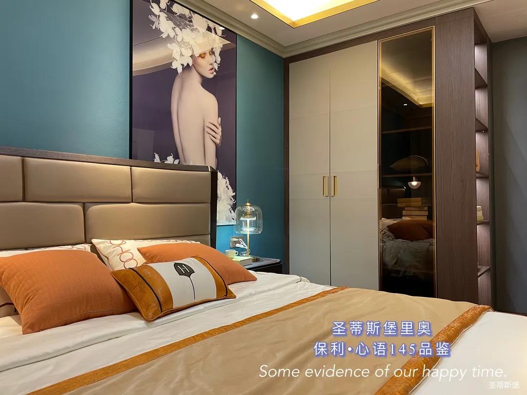 ▲床屏簡約的線條與定制柜的功能設置讓貼墻的藝術掛畫,散發出優雅而大膽的美感。