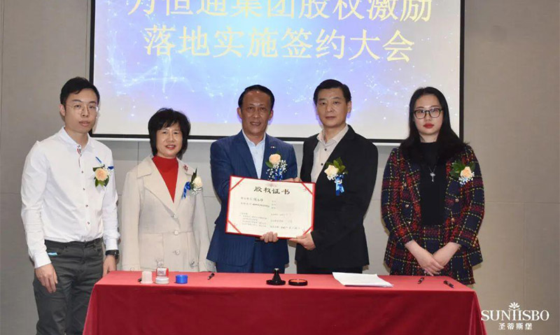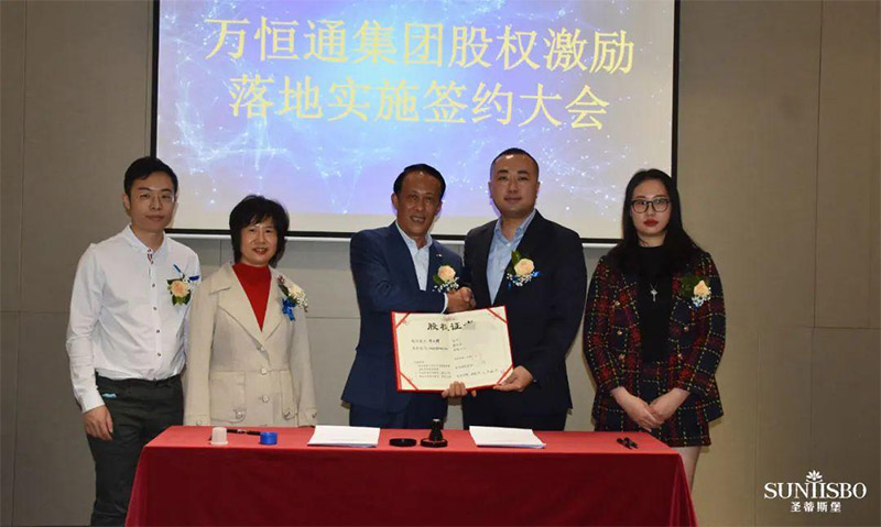 JN江南体育官方网站集團執行董事及法人代表王浩基先生正式為第一期六位虛擬受限股股東授予榮譽證書并簽訂股權分配協議。
