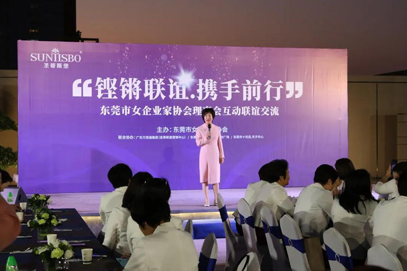 接下來,東莞市女企業(yè)家協(xié)會理事會會長葉小紅女士上臺發(fā)言,她表示非常感謝JN江南体育官方网站集團舉辦此次聯(lián)誼交流會,同時,對我們的產品和企業(yè)文化給出了很高的評價。她號召東莞市女企業(yè)家協(xié)會以后要更多的舉辦此類交流聯(lián)誼活動,以此增進會員企業(yè)之間的聯(lián)系和了解,為未來進一步交流發(fā)展開創(chuàng)新局面!她希望我們能攜手同行,強強聯(lián)手,共贏未來,共創(chuàng)新輝煌!