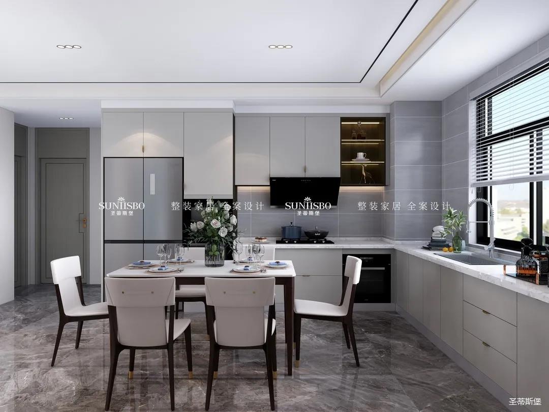 餐廚采用開放式布局,實現開闊明朗的公共空間,也提高了居家交流互動的便利性。減少不必要的物件,加上合理的設計,布局出和諧安全的居家環境。
