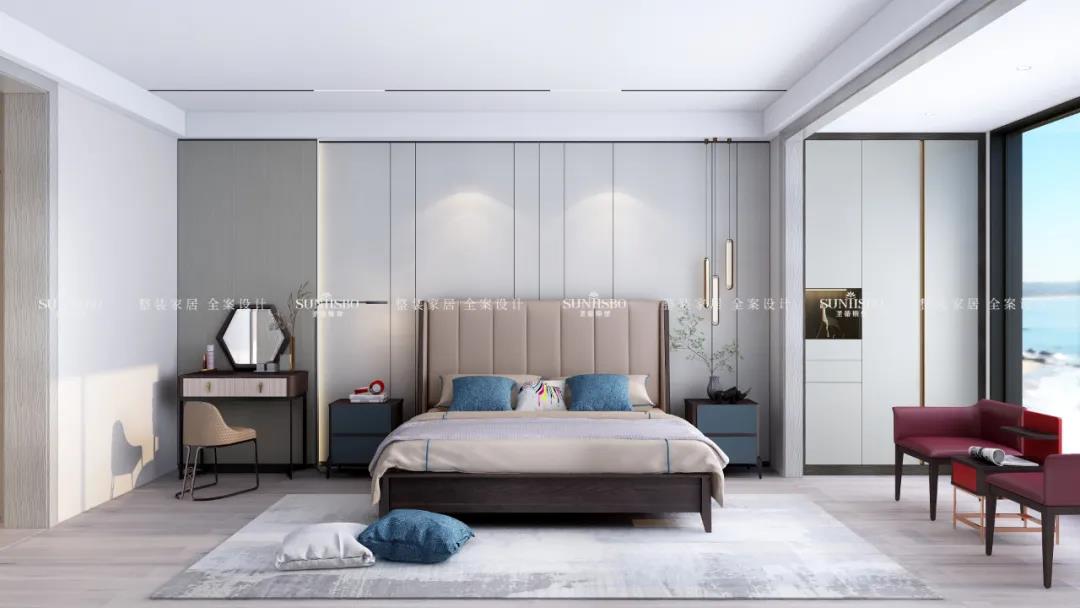 里奧系列新品是現代簡約風格的創新演繹,其產品的設計理念是把輕奢風格的一些金屬元素融入到現代簡約風格中,使用大量的啞光親膚材質代替亮光面,使理性的直線條和感性的色調調和搭配,整體打造一個簡約而又舒適的空間。