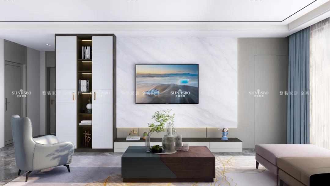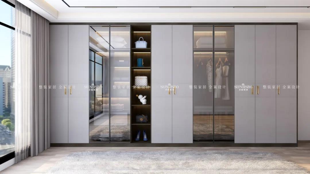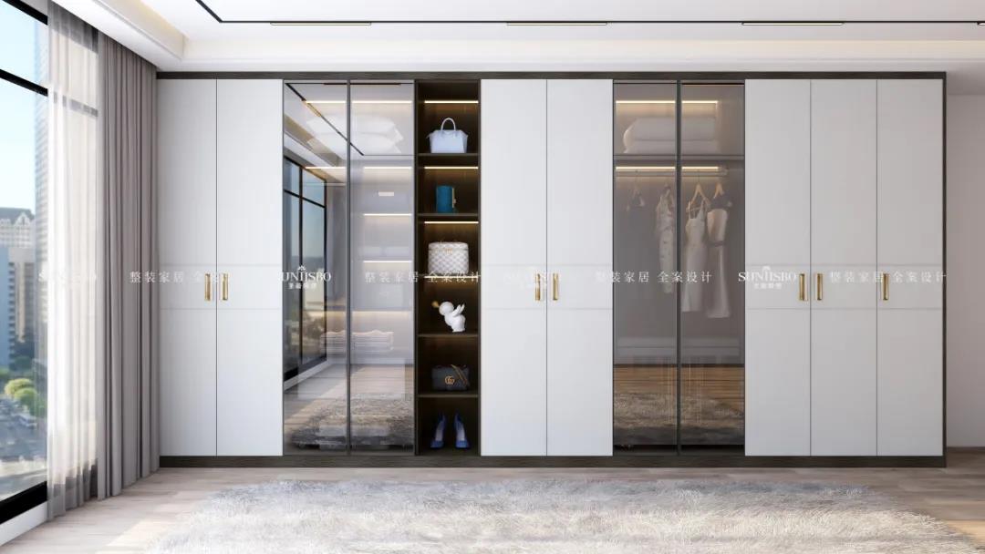 整體配色簡約時尚,花色可選性多;材質上采用新型高級材料——歐松板,通過UV漆工藝表面形成超級膚感膜,使接觸面舒適細膩。同時使用線條感簡潔利落的拉手作為設計元素,子母拉手的設計別具一格,體現了設計師的用心;搭配燈光和功能件,使產品極具展示效果與功能性。