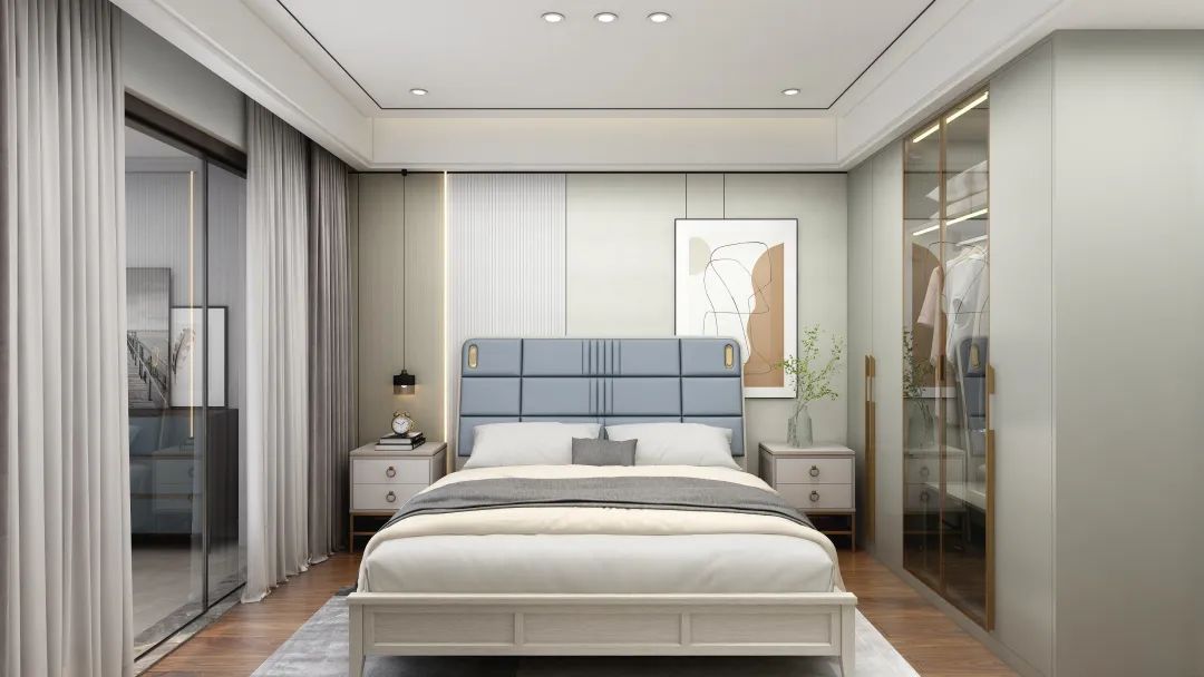 次臥用淺灰奠定空間時尚且沉穩的格調
